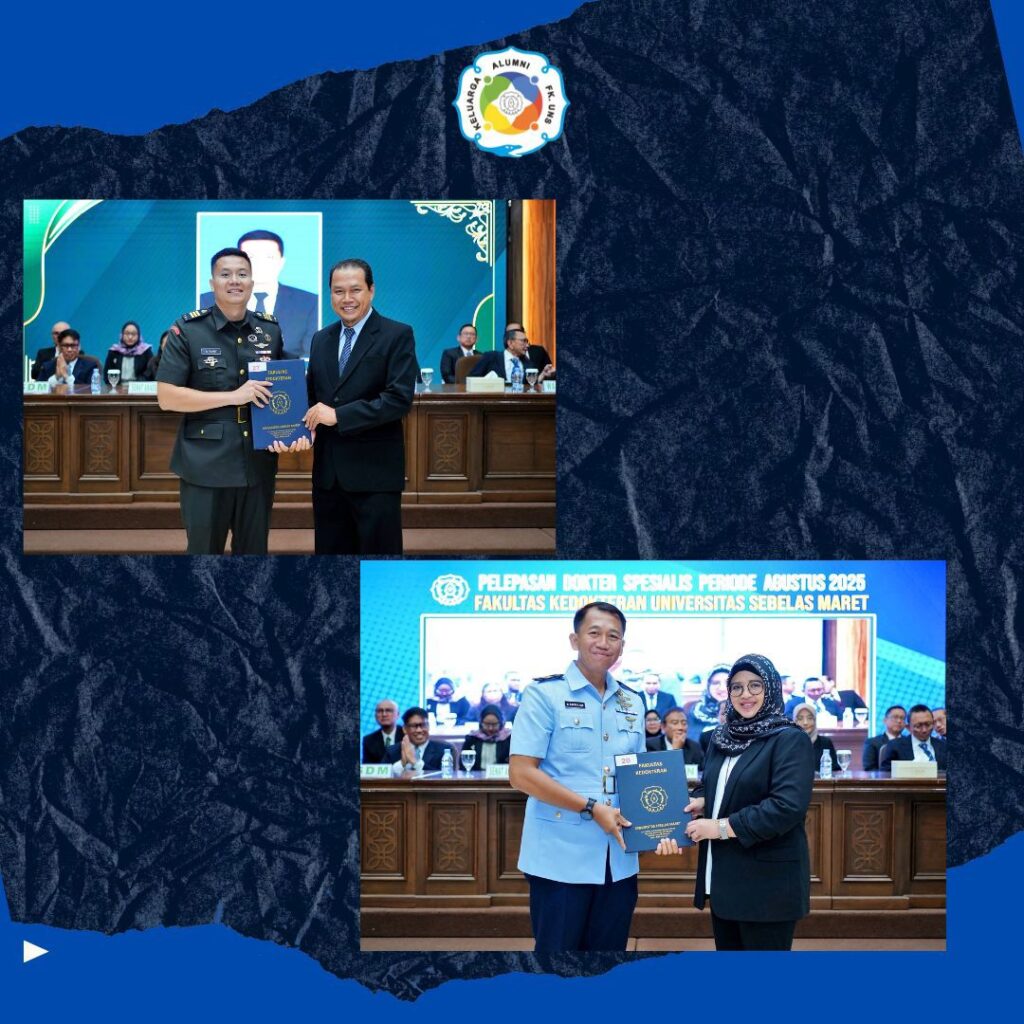 Fakultas Kedotkeran UNA kembali lagi melepas dokter spesialis baru pada periode Agustus 2025, Fakultas Kedokteran (FK) Universitas Sebelas Maret (UNS) Surakarta melalui Program Pendidikan Dokter Spesialis (PPDS) pada hari Rabu, 28 Agustus 2025 yang diselenggarakan di Auditorium FK UNS.