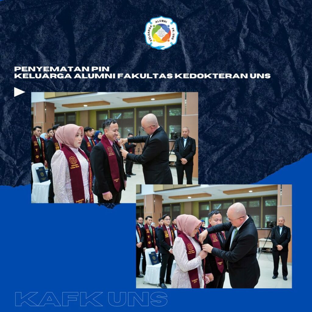 Kami Keluarga Alumni Fakultas Kedokteran UNS mengucapkan selamat bertugas mengabdikan diri sebagai dokter yang bijaksana dan beramanah dalam bekerja. Terus menjaga nama baik almamater Fakultas Kedokteran UNS. Selamat mengabdi kepada masyarakat dan tanah air. Selamat bergabung di Keluarga Alumni Fakultas Kedokteran UNS ( KA – FK UNS).