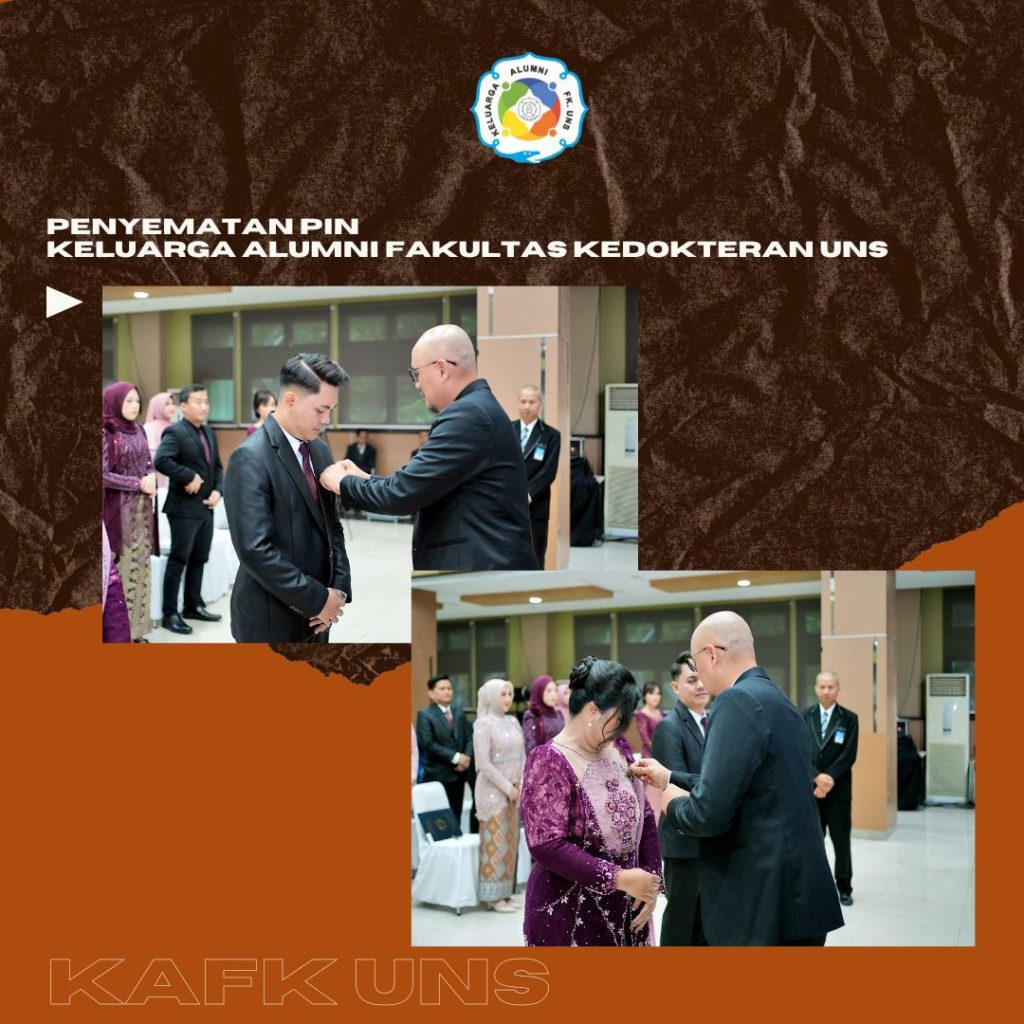 Pada acara PPDS Periode November 2025 ini untuk penyematan pin Keluarga Alumni Fakultas Kedokteran UNS diwakilkan oleh Dr. Nugrohoaji Dharmawan, dr, MKes, SpDVE Subsp.OBK, FINS DV, FAADV. selaku Wakil ketua 3 Keluarga Alumi Fakultas Kedokteran UNS.